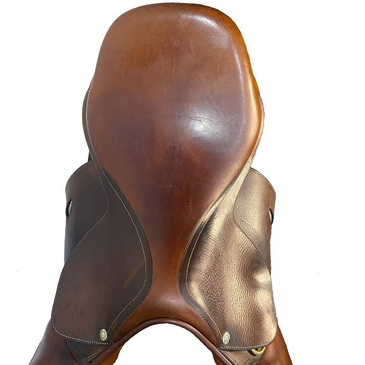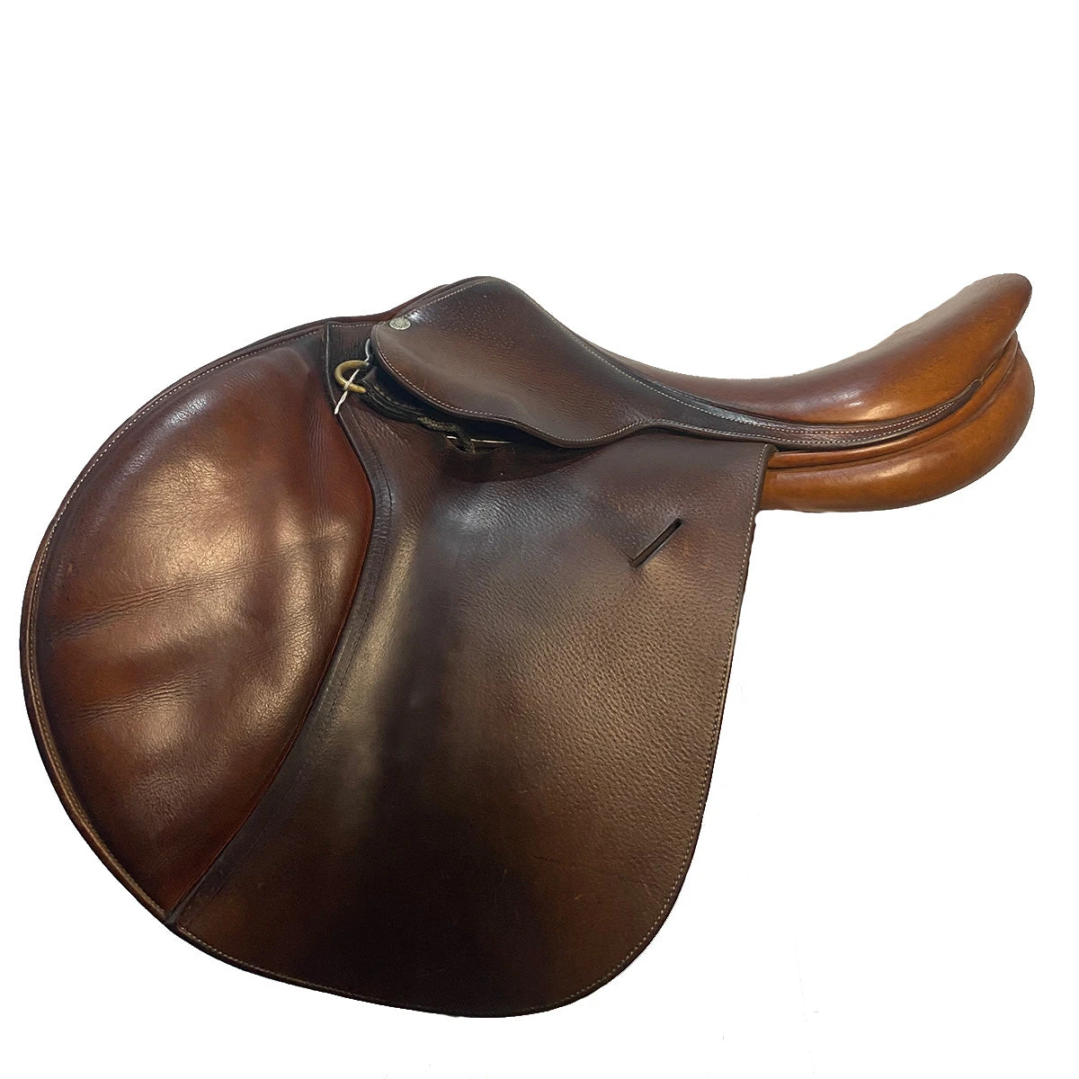 This beautiful used Butet half-deep close-contact saddle has been well cared for. It offers a 17″ seat, a regular tree, and a 2.5 flap. Take it on trial today!