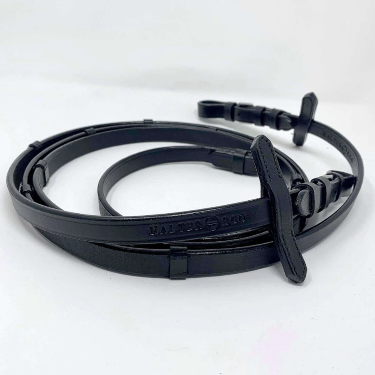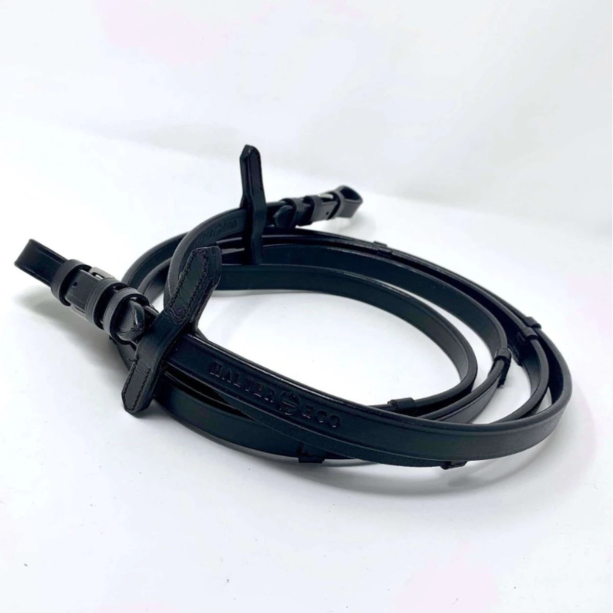 The perfect choice for a clean look with a grip! Soft leather reins are 5/8″ wide, thin rubber lining. Leather finishings and Stainless steel buckle ends.