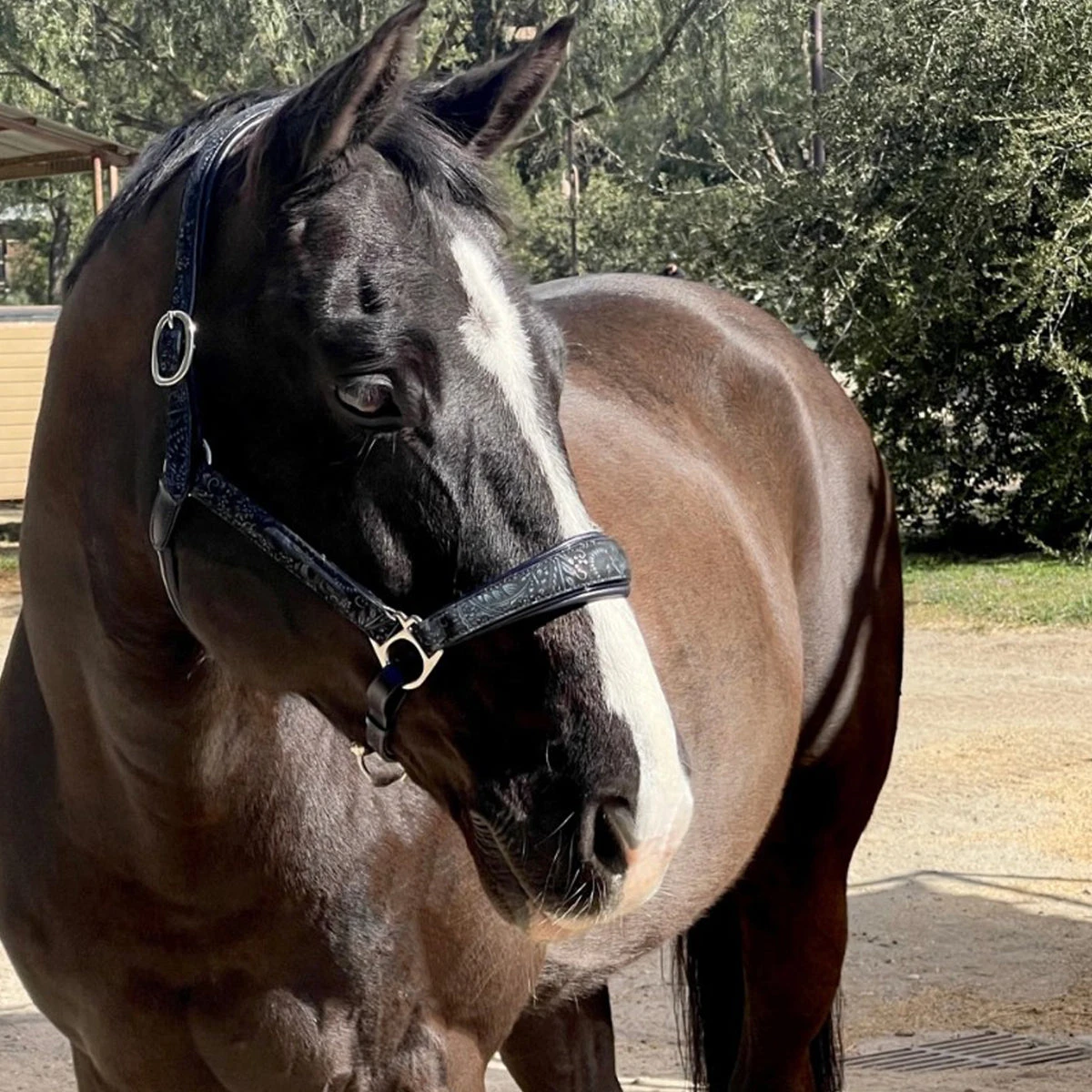 - Navy padding on noseband and browband